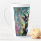 Wish someone special a magical day with this tall latte mug, which depicts an AI-generated fantasy-inspired woodland scene of saolas playing violas by candlelight in a magical forest sprinkled with trees, colourful butterflies, and colourful flowers.