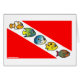 Scubadorable fish get together to make the red-striped Diver Down flag totally cute! The cartoon fish are all made in the super-cute Scubadorable style. Great gifts here for scuba divers and fish fans. This is not your average scuba flag design!