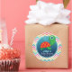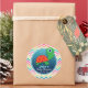 Personalize this cute, custom baby shower sticker with underwater aquatic green cartoon sea turtle and colourful teal, pink, yellow, orange, and blue chevron stripes background by adding mommy to be's name. It's a great neutral sticker for boy or girl ocean, sea life theme showers. Smaller stickers can be used as envelope seals for baby shower invitations or thank you cards. Use this cool baby shower sticker on party favours, gifts, and decorations, decor.