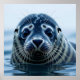 Adorable seal sticking his head out of the water. Cute eyes, pretty coat and just adorable.