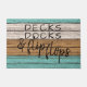 Vintage aqua turquoise blue and green coloured weathered wooden boat deck planks pattern. With DECKS DOCKS & FLIP FLOPS quote text. Made for the sailor, boater, water sport, boating, sailing, beach, ocean or sea lover.
