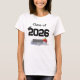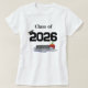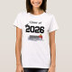 Design features graduating year in bold, black text. Image of a graduation cap is displayed at an angle on year. Pictured below is an image of schoolbooks and an apple.