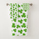 Decorate your bathroom for St. Patrick’s Day with this cute green and white shamrock pattern bath towel set. This design features green 3 leaf clovers with digitally painted texture.