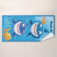 Two cute, smiling sharks feature on this beach towel. Customize it with a name and it makes a perfect towel for a boy who loves sharks!