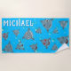 This cute illustrated cartoon shark design is great for the shark lover in your life. Bring these cutesharks with you to the beach as they float around in the ocean. The white and blue text name is customizable!