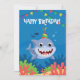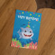 Cute happy birthday invitation card with a cute shark underwater. Change text if needed. Make your own and purchase now.