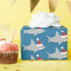 Wrapping Paper with cute, smiling, sharks in Santa hats.