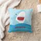 Cuddle up with this cute customizable shark pillow featuring a blue ocean background with a cute shark cartoon. Customize your pillow to add your child's name in a kid friendly font.