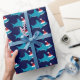 Cute Shark Santa Hat Blue Holiday Christmas Wrapping Paper