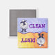 Cute Sheep Clean / Dirty Dishwasher Magnet features a cute fluffy black and white sheep character from our Animal Parade line painted by our talented children's book artist, Traci Van Wagoner. This humourous animal dishwasher magnet has the sheep from the front on the top with the word, clean on a dry brush textured style blue background. On the bottom of this funny magnet you'll find the sheep from behind with the word, dirty in purple on a textured yellow, orange background and a wavy purple divider line. This fun sheep magnet makes is perfect for barnyard animal lovers, farm animal lovers, and sheep lovers of all ages. Let this adorable sheep keep track of your clean or dirty dishes for your whole family. Animal Parade sheep is waiting to make that lamb lover or sheep lover on your gift list smile. If you love farm animals, you'll love our pig and cow dishwasher magnets too.