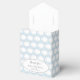 Beautiful sheep pattern baby shower party favour boxes. Soft pastel blue and white babyshower partyfavor box with custom thank you for coming message. Cute farm animal print with elegant brush script calligraphy typography template. Customizable background colour. Chic celebration accessories and party supplies for new baby boy or girl / newborn child. Tent shape favour boxes. Change quantity to get the cheap bulk discount price.