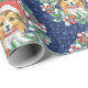 This gift wrap features an adorable watercolor sheltie wearing a Santa hat surrounded by a Christmas wreath on a navy blue background. Perfect for the dog lover in your life.