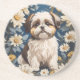 Cute Shih Tzu Dog White Daisy Flowers Coaster