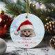 Cute Shorthair Cat Santa Hat Paw Personalized Ceramic Ornament