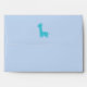 A cute silhouette of a blue giraffe on the flap of the envelope and once opened, a blue giraffe print pattern is revealed on the inside. A great envelope to accompany safari themed baby shower invites and birthday party invites.