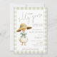 Cute Silly Goose Sage Gingham Baby Shower Invitation