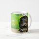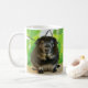 Photograph of a cute, silver fox guinea pig with tree leaves in background. Image printed on both sides of the mug. Mug colour, stle, and size are customizable.
