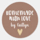 A personalized "homemade with love" sticker with a gold heart on a brown terra cotta textured background. Make it yours by adding your own name. A pretty finishing touch for all of your homemade gifts. Designed for you by Blackberry Boulevard.