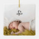 Cute baby birth photo ornament with black script.