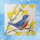 This vintage illustration is a sweet little blue and red bird sitting on a branch with pretty yellow flowers and singing. See my store Art by MAR for matching products with this design.