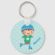 Cute little skater boy with blue helmet, matching protective gears and roller skates. Personalize the keychain including the alphabet on the boy's tee!