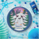 A fun Paper Plate to Personalize, with two cute Penguins having fun, ice-skating, in a snowy landscape with fir trees and a setting sun; from a hand-painted paper collage by Judy Adamson. The background and text colour shown here can be changed if there's another dark colour you prefer.