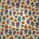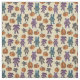 This Halloween fabric is brimming with cuteness. It features illustrations of cute stuffed animals with some of their skeletons showing for a slightly spooky look along with some patched plush pumpkins. There’s a bat, a bear, a cat, a dog and a rabbit. The animals and pumpkins are in shades of charcoal grey, purple, teal and orange against a speckled cream coloured background. It's perfect for crafting an adorable Halloween gift.