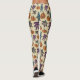 These Halloween leggings are brimming with cuteness. They feature illustrations of cute stuffed animals with some of their skeletons showing for a slightly spooky look along with some patched plush pumpkins. There’s a bat, a bear, a cat, a dog and a rabbit. The animals and pumpkins are in shades of charcoal grey, purple, teal and orange against a speckled cream coloured background.