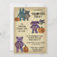 Make it an extra cute Halloween party with these easy to customize invitations. They feature cute illustrations of patched stuffed animals with their skeletons showing for a cute, if slightly spooky look along with illustrations of orange pumpkins.