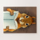 Cute Sketch Watercolor Squirrel Reading a Book Jigsaw Puzzle
