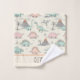 This personalized towel features a playful scene of sketchy dinosaurs in soft pastel colours. Doodled elements include volcanoes, tropical trees, and grass.