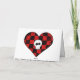 A cute romantic punk goth heart in a red and black chequerboard with a skull in it on a greeting card that is suitable for a tween or teen girl on the punk side.
