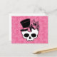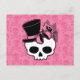 Cute Skull With Top Hat Rose Pink Bow Postcard