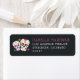 Les étiquettes d'adresse de retour du thème "Jour des Morts" sont revêtues de lettres roses et blanches sur un arrière - plan noir et moelleux orné d'une paire de crânes à sucre colorés. Conçu pour coordonner avec notre fête Dia de los Muertos et notre collection d'anniversaire.