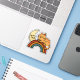 A cozy and cute design featuring a sleepy orange cat resting on a retro rainbow beside a smiling moon. Perfect for cat lovers, nap enthusiasts, and anyone who embraces lazy days with charm and humour. Great on stickers, shirts, and cozy gifts for chill vibes all day.