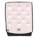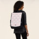 A backpack with a custom name or initials designed with a cute pattern of sleeping kitty cats. On a pink background.
