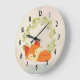 Cute Sleeping Orange Fox with Green Leaves Wreath Large Clock