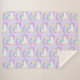 A sherpa blanket with an illustration of a cute and kawaii unicorn sleeping peacefully with a fancy curly mane and tail. A colourful rainbow shooting star above her
