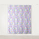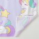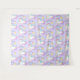 A tapestry with an illustration of a cute and kawaii unicorn sleeping peacefully with a fancy curly mane and tail. A colourful rainbow trailing behind a shooting