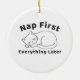 Cute Sleepy Cat “Nap First” Line Art Design Ceramic Ornament