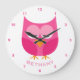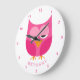 Cute Sleepy Pink Owl Personalized With Numbers Large Clock