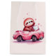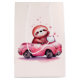 Gift bag with an adorable illustration. A happy looking sloth sitting in a sporty pink convertible. Waving as he drives by. With hearts floating upwards.