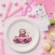 Cute Sloth Driving a Pink Convertible Paper Plate