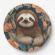 Cute Sloth Elegant Floral William Morris Inspired Paper Plate