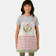 Girly apron with cute sloth and blush pink floral pattern contrasted by green foliage. Personalize with your name. This would make a great birthday gift for girls.