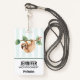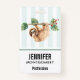 Name badge with an adorable sloth hanging upside down from a tree branch. Tree branch is decorated with tropical leaves and berries.