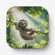 Cute Sloth In Backlit By Sunbeams Paper Plate