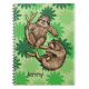 Notebook with a pair of cute sloths climbing a branch with cecropia leaves in the background. Personalize with your name.