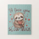 Cute sloth romantic fun pun I love you slow much Jigsaw Puzzle