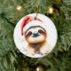 Cute Sloth Wearing Santa Hat Ceramic Ornament